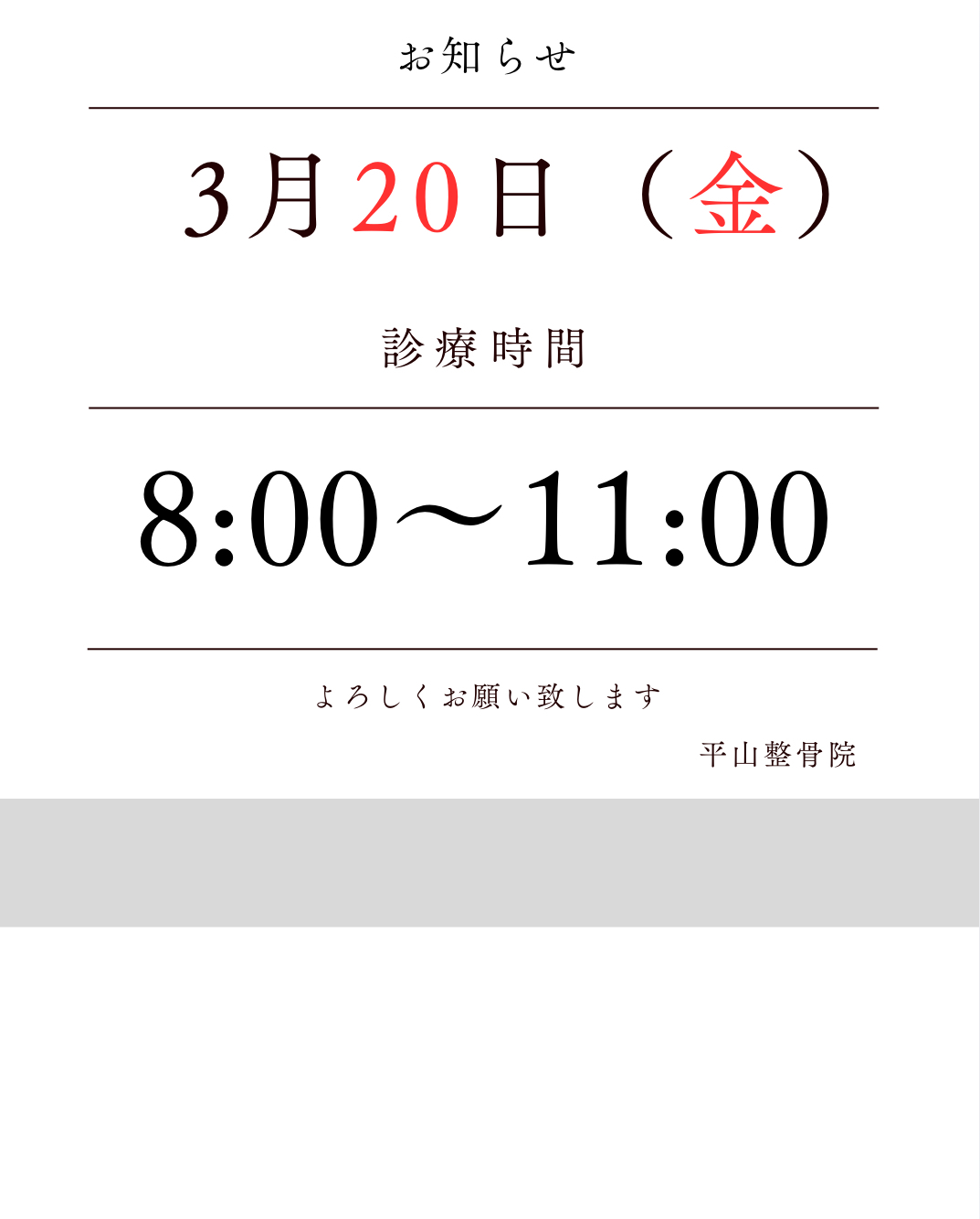 3月20日(金)のお知らせ