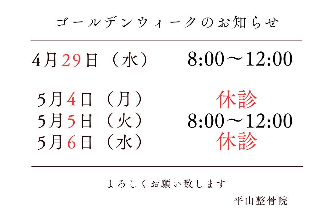 ゴールデンウィークのお知らせ